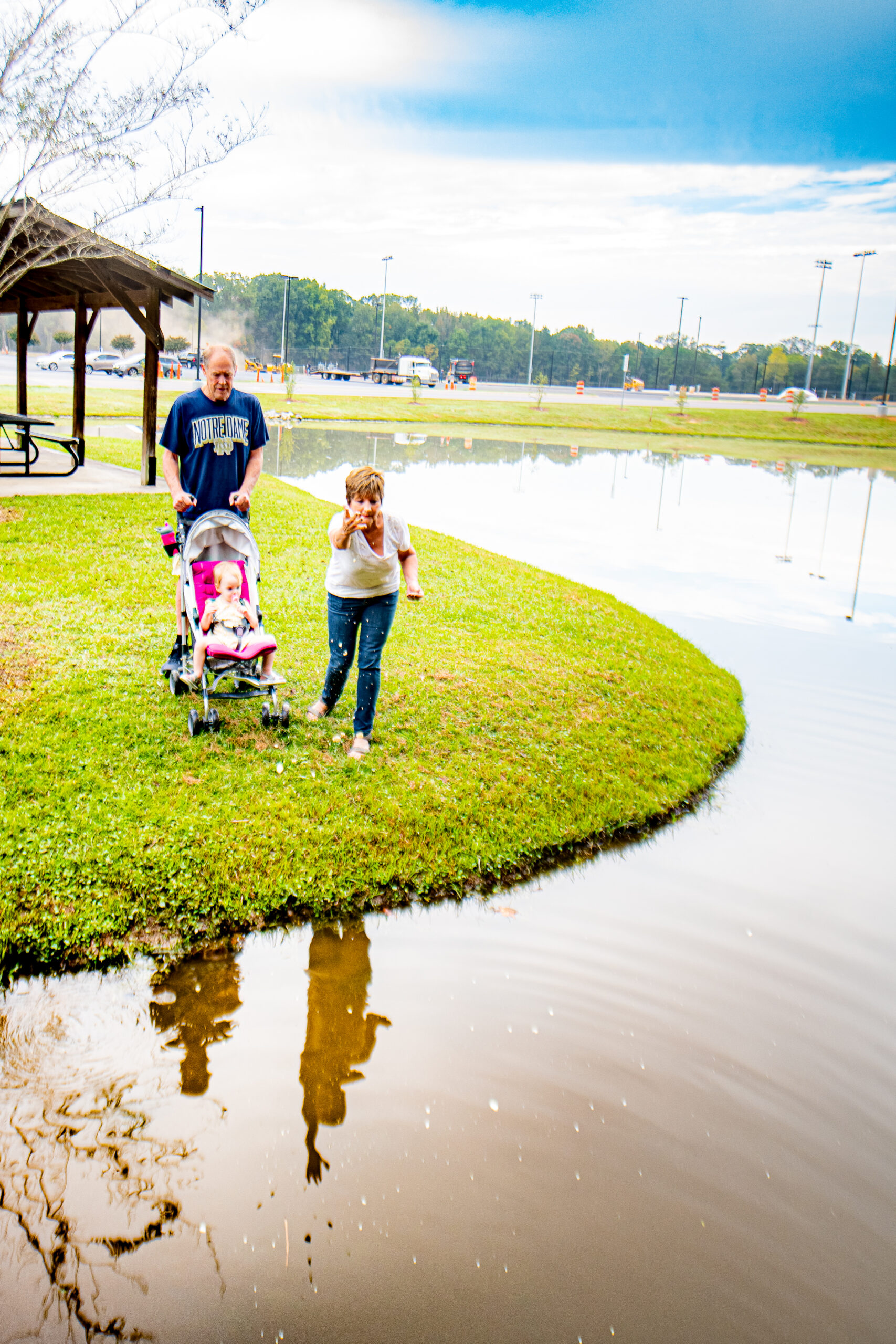 Two hundred parking spots were added to the existing parking lot. Future plans include adding additional bathroom facilities and adding a second entrance/exit to the WynLake neighborhood. The new facilities were added to Veterans Park’s existing nine pavilions available for rent, two playgrounds, a disc golf course, batting cages, a bluebird trail, three ponds with fish feeders including one with a lighted fountain, several passive play meadows, an educational nature walk area, a Veterans Memorial, and a self-contained regulation skate park.